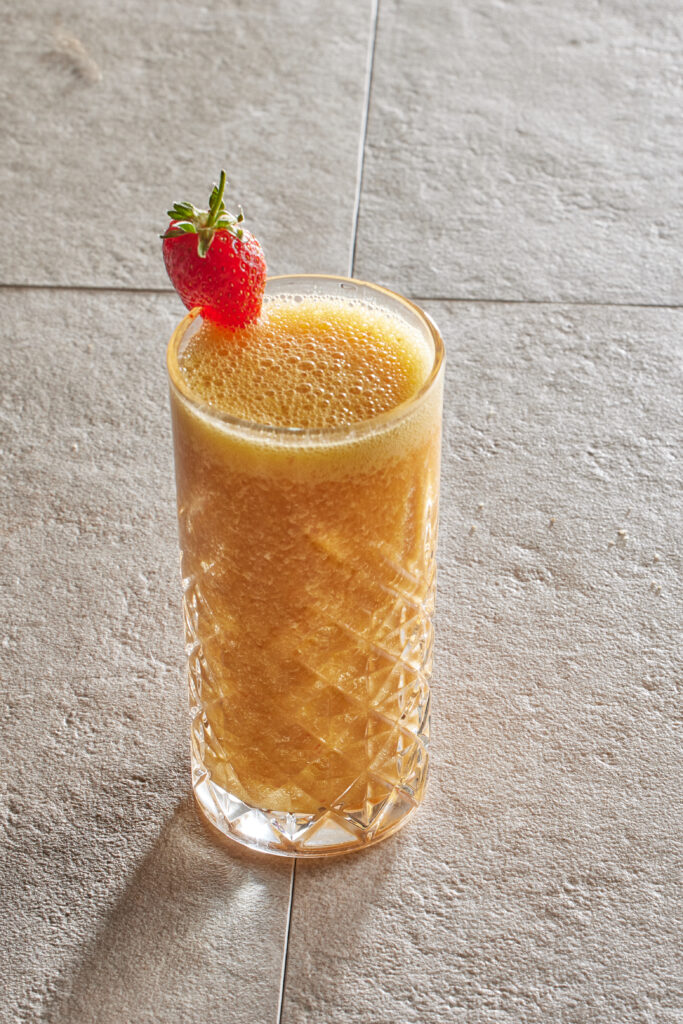 Casamigos tequila, portakal likörü, narenciye karışımı, çilek şurubu ve taze çilek