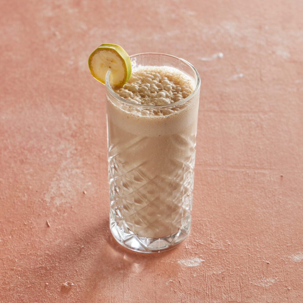 Espresso, badem sütü, muz, çikolatalı protein tozu