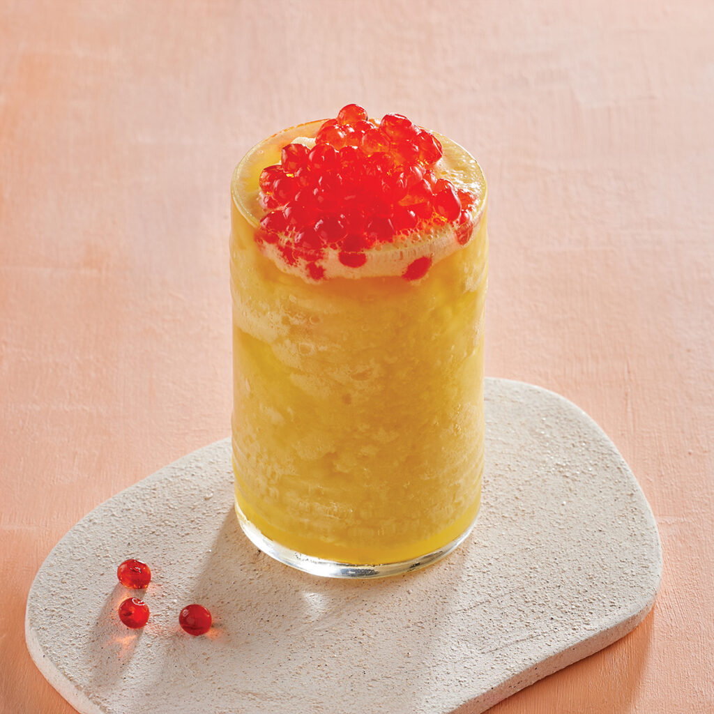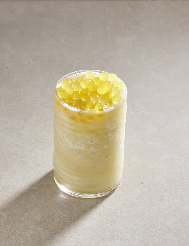 Mango bubble tea, limonata, çilek ve çilek şurubu