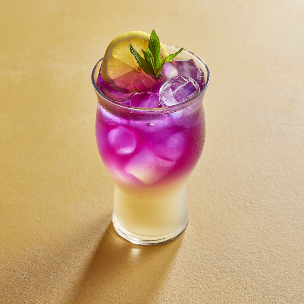 Sade limonata, blue butterfly çayı ve lavanta şurubu