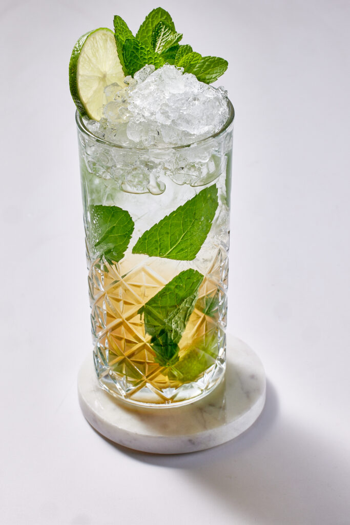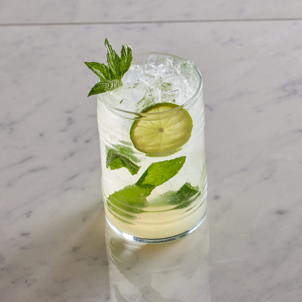 Captain Morgan rum, taze nane, lime, soda ve beyaz şeker